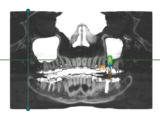 AI automatically positions a virtual restoration where the final crown should be — aligning every implant from the prosthetic outcome backward.