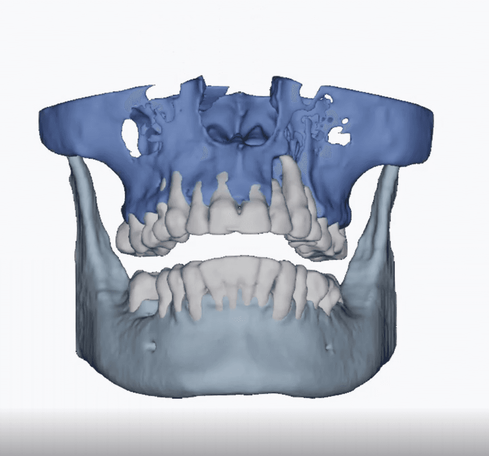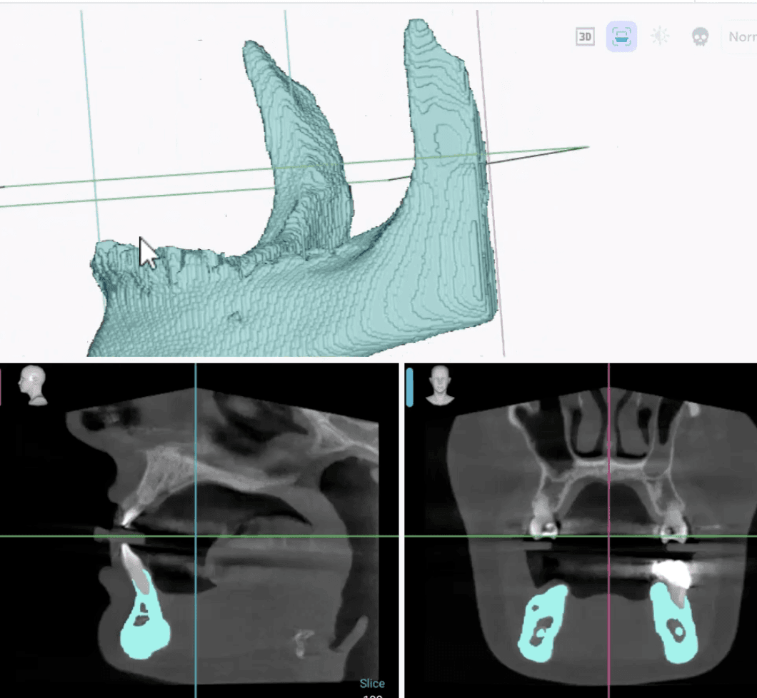 AI-segmented anatomy, aligned and export-ready for prosthetic-driven planning