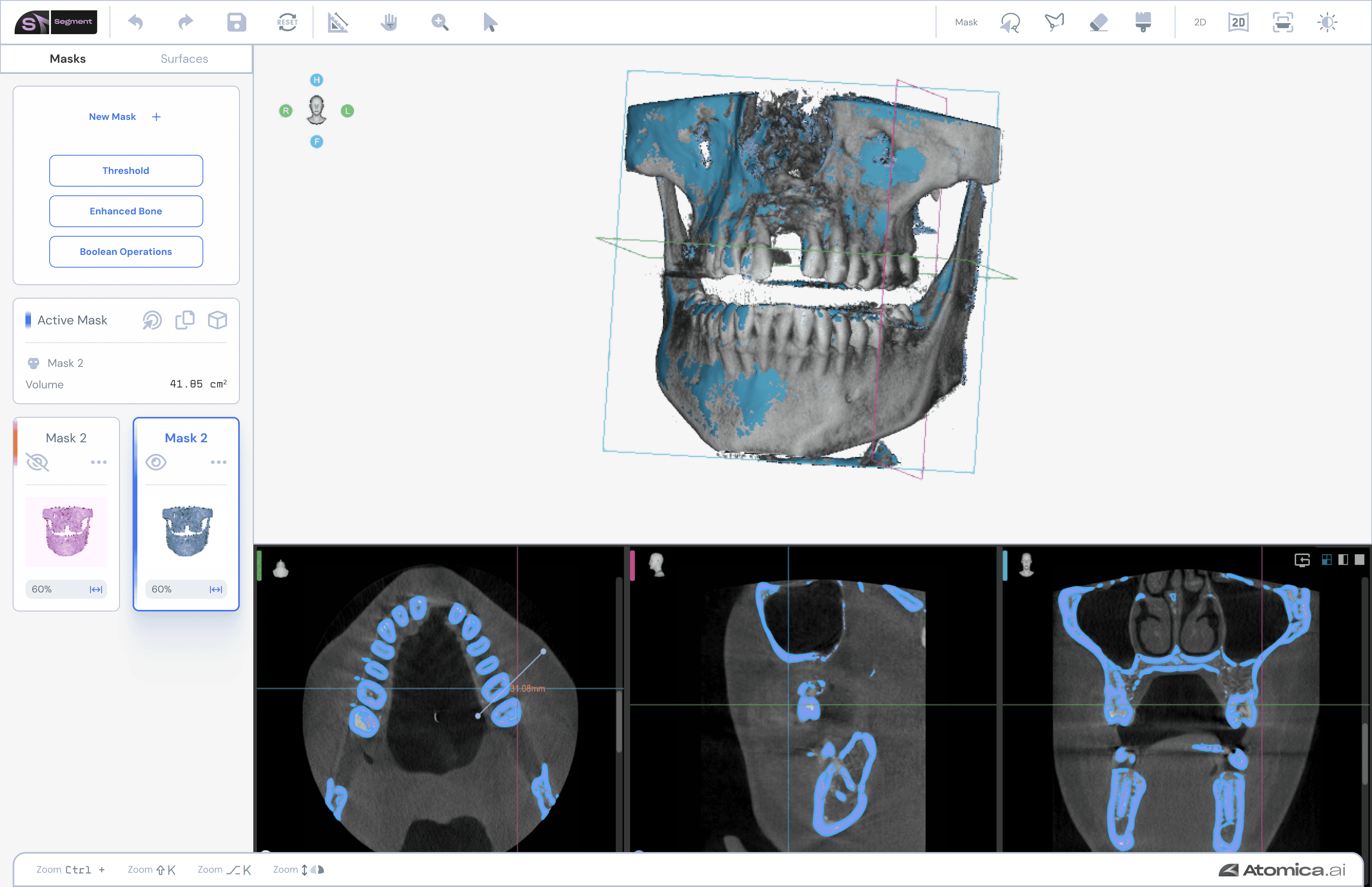 Isolate structures to assess pathology and bone volume clearly and choose the right treatment path.