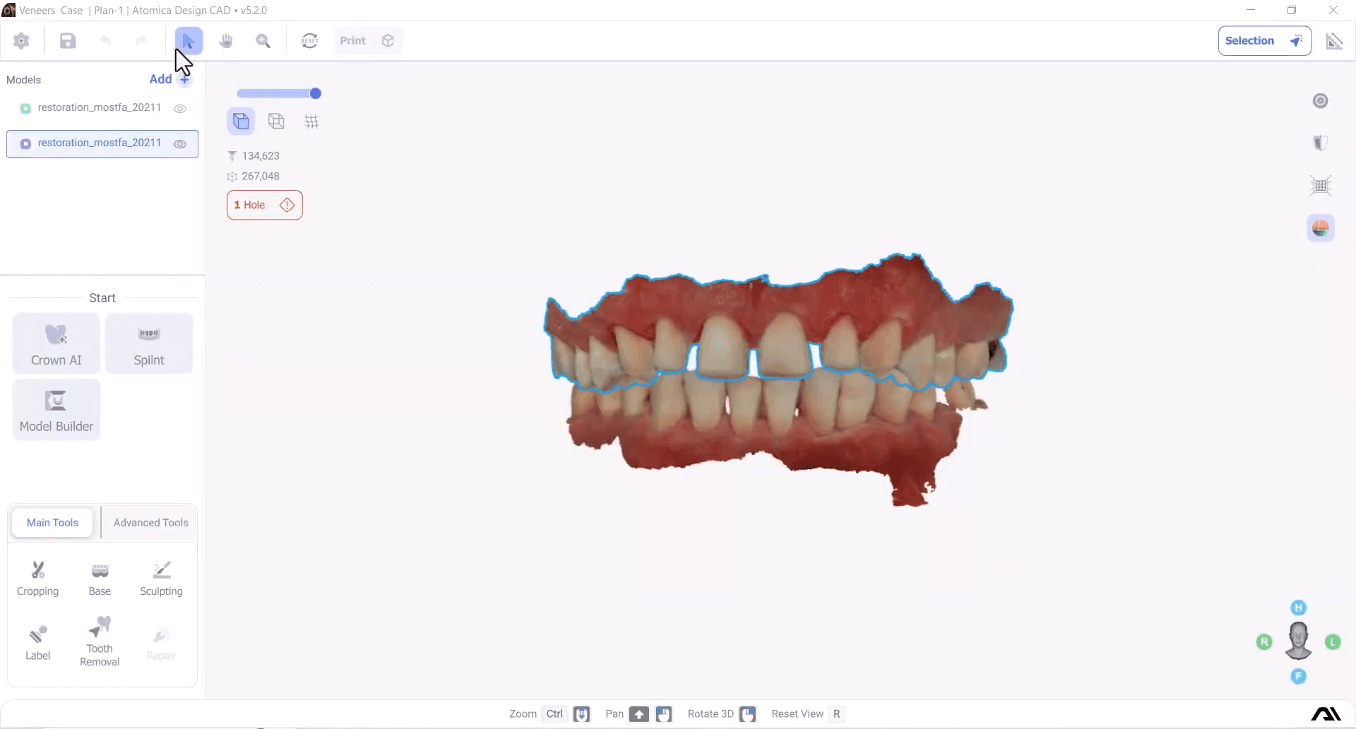 select a portion of a model and extract it as a separate model, making it easier to work with complex cases or focus on specific areas. This feature streamlines your workflow and enhances precision during planning and design.